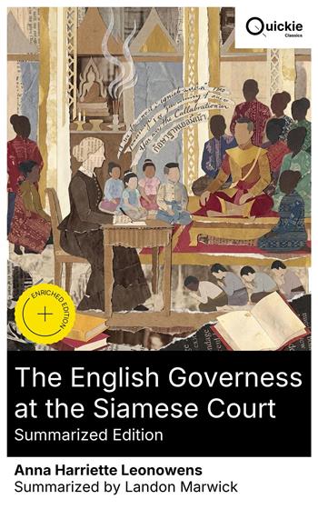 In this Victorian memoir, Leonowens recounts her 1862–67 tenure as English tutor to the children and wives of King Mongkut of Siam. With ornate yet didactic prose, she renders palace ritual, Buddhist observance, the inner court's seclusion, and a kingdom negotiating Western treaties and modernization. Blending reportage, anecdote, and moral reflection, she denounces slavery and polygamy while extolling education, offering an ethnographic portrait inflected by Orientalist optics—its vivid scenes influential, yet long debated for selectivity and embellishment. Born in British India and widowed young, Leonowens worked as a teacher in the Straits Settlements before accepting Mongkut's invitation. Her cosmopolitan background and precarious independence shaped her attention to royal women and the crown prince Chulalongkorn. Later a lecturer in North America, she revisited Siam in print to argue for women's education and humane governance, turning personal service into a public meditation on culture and conscience. Recommended to readers of travel writing, Southeast Asian history, and gender studies, this text rewards a critical lens: not a neutral transcript, but a formative Western view of Siam's pivotal modernizing moment. Quickie Classics summarizes timeless works with precision, preserving the author's voice and keeping the prose clear, fast, and readable—distilled, never diluted. Enriched Edition extras: Introduction · Synopsis · Historical Context · Brief Analysis · 4 Reflection Q&As · Editorial Footnotes.