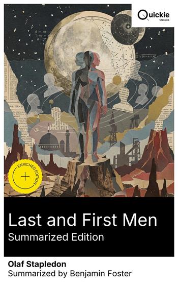 Last and First Men is a panoramic 'future history' charting eighteen successive human species across two billion years. Told as a telepathic testament from our descendants to the present, its essayistic, starkly impersonal prose fuses speculative anthropology with metaphysical reflection. Stapledon anatomizes cycles of civilizational ascent and collapse, genetic and social engineering, collective minds, planetary migration—including humanity's tragic relocation to Venus—and ultimately the Last Men's stoic cosmic perspective. Composed in the interwar years, it converses with Wellsian scientific romance while interrogating contemporary obsessions with nationalism, technocracy, and eugenics. An Oxford-educated philosopher with a doctorate in ethics who lectured in psychology and social philosophy at Liverpool, Stapledon brought a disciplined speculative method to fiction. His service in a First World War ambulance unit and his pacifist commitments sharpened his skepticism toward martial heroics and imperial destiny, while his engagement with emerging sciences—cosmology, evolutionary theory, and social planning—encouraged him to imagine humanity at planetary and transhuman scales. Readers seeking intellectually audacious science fiction will find this a demanding yet exhilarating classic: a work to savor for its cerebral grandeur, prophetic reach, and moral seriousness. Approach it as philosophy dramatized—an atlas of possible futures and human responsibilities. Quickie Classics summarizes timeless works with precision, preserving the author's voice and keeping the prose clear, fast, and readable—distilled, never diluted. Enriched Edition extras: Introduction · Synopsis · Historical Context · Brief Analysis · 4 Reflection Q&As · Editorial Footnotes.