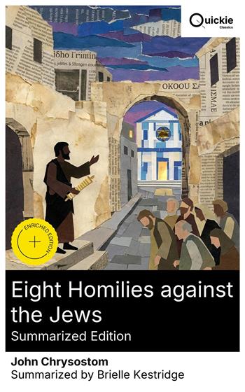 Eight Homilies Against the Jews comprises late fourth-century Antiochene sermons in which John Chrysostom chastises Christians who visited synagogues and observed Jewish festivals. Blending expository exegesis with courtroom invective, he wields Pauline argument, Septuagint proof-texts, typology, and relentless anaphora to assert Christian supersession and deter 'judaizing'. The homilies are pastoral performances as much as polemics, framed by a Christianizing empire in which urban congregations negotiated proximity to Jews and God-fearers. Trained by the pagan rhetor Libanius and seasoned by ascetic discipline, Chrysostom, later archbishop of Constantinople, brought classical technique to pastoral crisis. In Antioch he faced Christians drawn to synagogue liturgy, shared festivals, and healing rites; coupled with new imperial laws and his reformist zeal, these pressures sharpened his boundary-policing tone. The homilies join his wider program of moral admonition and biblical commentary aimed at consolidating Christian identity. Students of late antique religion, patristic rhetoric, and Jewish-Christian relations should read this volume critically yet attentively. While ethically troubling, it is crucial for understanding how preaching shaped doctrine, discipline, and intercommunal hostilities. Use with a scholarly translation and robust historical commentary. Quickie Classics summarizes timeless works with precision, preserving the author's voice and keeping the prose clear, fast, and readable—distilled, never diluted. Enriched Edition extras: Introduction · Synopsis · Historical Context · Author Biography · Brief Analysis · 4 Reflection Q&As · Editorial Footnotes.