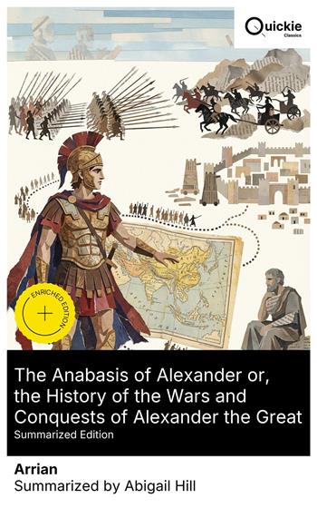 Arrian's Anabasis of Alexander is a lucid, classicizing chronicle of the Macedonian's campaigns from the Hellespont to the Hyphasis. In measured, Xenophontic prose, it marries crisp battle narratives—Granicus, Issus, Gaugamela—to analyses of logistics, siegecraft, and provincial settlement, with ethnographic asides and sparing speeches. Rejecting the sensational Cleitarchan stream, Arrian foregrounds Ptolemy and Aristobulus to craft a sober, administratively minded history within the Second Sophistic milieu. Lucius Flavius Arrianus of Nicomedia—Greek litterateur and Roman senator—studied under Epictetus, later serving as consul and governor of Cappadocia, where he directed campaigns against the Alans. This administrative and military experience, coupled with Stoic moral training, shaped his preference for disciplined generalship and verifiable testimony. Modeling his work on Xenophon, he aimed to rescue Alexander from gossip by rigorous source criticism. Readers of ancient history, military studies, and leadership will find here the most reliable classical portrait of Alexander's campaigns. Begin with Arrian for sobriety and operational clarity, then compare with Curtius, Diodorus, and Plutarch; but as a study in strategy, statecraft, and evidence, this remains first choice. Quickie Classics summarizes timeless works with precision, preserving the author's voice and keeping the prose clear, fast, and readable—distilled, never diluted. Enriched Edition extras: Introduction · Synopsis · Historical Context · Brief Analysis · 4 Reflection Q&As · Editorial Footnotes.