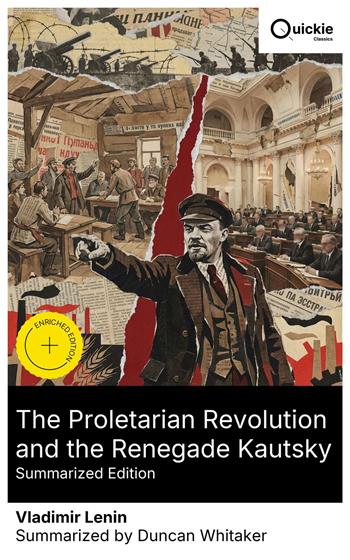Lenin's The Proletarian Revolution and the Renegade Kautsky (1918) is a vehement defense of the October Revolution and the dictatorship of the proletariat against Karl Kautsky's The Dictatorship of the Proletariat. It opposes bourgeois parliamentarism to soviet democracy, justifies the dissolution of the Constituent Assembly, and reads legality through the prism of civil war and imperialist siege. Combining pamphlet heat with rigorous citation of Marx and Engels, it extends State and Revolution into the concrete problems of holding power. Lenin writes as both theorist and head of a besieged revolutionary government. A veteran of exile and factional struggle in the Second International, editor of Iskra, and author of Imperialism, he had just overseen the seizure of power and the painful Brest-Litovsk peace. His intimate engagement with Marxist doctrine and the immediate pressures of governance—food shortages, sabotage, the need to centralize authority—inform his insistence that proletarian rule requires new institutions and a break with parliamentary gradualism. Essential reading for students of Marxism, democratic theory, and modern revolutions, this work illuminates the 1917–1918 split in socialism and the meaning of "proletarian democracy," provoking reflection on strategy, legitimacy, and political form. Quickie Classics summarizes timeless works with precision, preserving the author's voice and keeping the prose clear, fast, and readable—distilled, never diluted. Enriched Edition extras: Introduction · Synopsis · Historical Context · Author Biography · Brief Analysis · 4 Reflection Q&As · Editorial Footnotes.