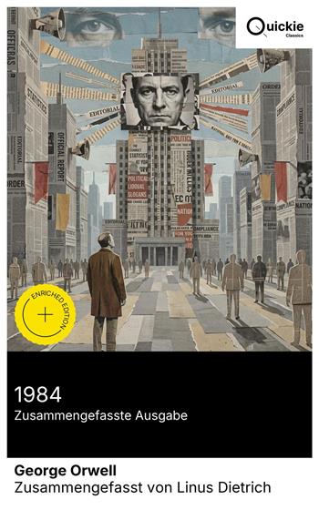 1984 entfaltet die beklemmende Topografie Ozeaniens, eines totalitären Überwachungsstaates, in dem Winston Smith im Ministerium für Wahrheit die Vergangenheit nach Parteilinie tilgt. Mit der kargen Präzision eines dokumentarischen Realismus zeigt der Roman, wie Neusprech, Doppeldenk und endloser Krieg Wahrnehmung, Erinnerung und Begehren normieren. Orwells nüchterne Prosa verbindet Intimität mit politischer Theorie, während die Beziehung zu Julia und die Begegnung mit O'Brien die Dialektik von Rebellion und Unterwerfung dramatisieren. Im Kontext der Dystopie nach Faschismus und Stalinismus steht 1984 als anti-utopische Allegorie über Sprache, Macht und Wahrheit. George Orwell (Eric Arthur Blair) verband politisches Engagement mit empirischer Beobachtung: Als Kolonialpolizist in Burma, als Reporter der Arbeiterarmut, als Freiwilliger im Spanischen Bürgerkrieg und als BBC-Redakteur studierte er Propaganda und Machtmechanismen aus nächster Nähe. Die Erfahrung der stalinistischen Repression und der Bombennächte in London, seine Essays zur Sprache sowie die Entstehung des Romans auf Jura unter Krankheit prägen den unversöhnlichen Ton von 1984, erschienen 1949. Dieses Buch empfiehlt sich allen, die die Schnittstellen von Literatur, Ideengeschichte und Medienkritik verstehen wollen: als warnendes Instrumentarium gegen Euphemismen, Manipulation und die Erosion des Faktischen. 1984 zu lesen heißt, die eigene Sprache zu prüfen und die Freiheit als tägliche Praxis zu begreifen. Quickie Classics fasst zeitlose Werke präzise zusammen, bewahrt die Stimme des Autors und hält die Prosa klar, schnell und gut lesbar – destilliert, niemals verwässert. Extras der erweiterten Ausgabe: Einführung · Zusammenfassung · Historischer Kontext · Autorenbiografie · Kurze Analyse · 4 Reflexionsfragen · Redaktionelle Fußnoten.
