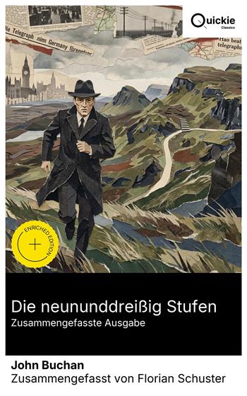 Die neununddreißig Stufen (1915) begründete maßgeblich den modernen Spionageroman: In atemloser Ich-Erzählung flieht der aus Südafrika heimgekehrte Ingenieur Richard Hannay durchs schottische Hügelland, nachdem der mysteriöse Scudder in seiner Wohnung ermordet wurde. Verfolgt von Polizei und einer deutschen Verschwörergruppe, dem 'Schwarzen Stein', entschlüsselt Hannay Hinweise, die eine Kriegsprovokation verhindern sollen. Buchans sparsame, szenisch montierte Prosa, episodische Verwandlungen und topografische Präzision verbinden Abenteuer- und Invasionsliteratur der Vorkriegsjahre mit einem neuartigen Realismus des Tempos. John Buchan (1875–1940), schottischer Romancier, Historiker und späterer Generalgouverneur Kanadas, verband akademische Bildung (Glasgow, Oxford) mit imperialer Verwaltungspraxis. Erfahrungen als Beamter in Südafrika und als Informationsdirektor im Ersten Weltkrieg sowie sein Bewusstsein für mediale Propaganda prägten seine Vorstellung vom 'shocker'—der bewusst überdrehten, aber psychologisch treffsicheren Spannungsnovelle—und lieferten Stoff und Milieu für Hannays lakonische, pragmatische Stimme. Empfehlenswert für Leserinnen und Leser, die Spannung mit kulturhistorischer Tiefenschärfe suchen: Der Roman ist zugleich Blaupause des britischen Thrillers und ein Dokument der Vor-Kriegs-Ängste. Wer Ian Fleming, Eric Ambler oder le Carré schätzt, findet hier die formbildende Quelle—ein prüfbarer, elegant komponierter Text, der gleichermaßen unterhält und analytische Lektüren belohnt. Quickie Classics fasst zeitlose Werke präzise zusammen, bewahrt die Stimme des Autors und hält die Prosa klar, schnell und gut lesbar – destilliert, niemals verwässert. Extras der erweiterten Ausgabe: Einführung · Zusammenfassung · Historischer Kontext · Kurze Analyse · 4 Reflexionsfragen · Redaktionelle Fußnoten.