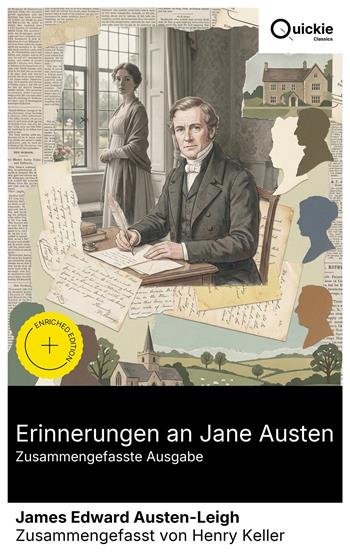 Erinnerungen an Jane Austen (1869) ist die maßgebliche Familienbiografie der Schriftstellerin, ein ruhig erzähltes, anekdoten- und dokumentengestütztes Porträt, das die häusliche, geistige und soziale Umwelt Austens rekonstruiert. In nüchternem, doch elegischem Ton arrangiert James Edward Austen-Leigh Erinnerungen, Stammbäume, Alltagsszenen und ausgewählte Briefe zu einem Bild, das die viktorianische Wahrnehmung der Autorin nachhaltig prägte. Spektakuläres wird gemieden zugunsten einer leisen, pastoralen Darstellung von Charakter, Arbeitsweise und Lektüren; die erweiterte zweite Auflage (1871) fügte weitere Dokumente sowie die frühe Novelle Lady Susan und Auszüge aus The Watsons hinzu. Der Autor James Edward Austen-Leigh (1798–1874), anglikanischer Pfarrer und Neffe Jane Austens, kannte die familiären Archive und Stimmen aus erster Hand. Aufgewachsen im Austen-Kreis von Steventon, stützte er sich auf die Erinnerungen von Nichten und Neffen sowie auf die von Cassandra überlieferten Briefe. Verfasst im hohen Alter und im Kontext einer viktorianischen Erinnerungskultur, will das Buch das Bild der Tante ordnen und vor Missdeutungen schützen; sein pietätvoller, familiärer Blick erklärt sowohl seine Genauigkeit wie auch seine diskreten Auslassungen. Empfehlenswert ist dieses Werk allen, die Austens Werkgenese, Milieu und Selbstverständnis verstehen wollen. Trotz apologetischer Tendenzen bietet es unersetzliche Primärzeugnisse und eine frühe Rezeptionsgeschichte. Als philologisch und kulturhistorisch bedeutsame Quelle überzeugt es in kritischer Lektüre ebenso wie als ergänzende Stimme zu modernen Biografien und kommentierten Briefausgaben. Quickie Classics fasst zeitlose Werke präzise zusammen, bewahrt die Stimme des Autors und hält die Prosa klar, schnell und gut lesbar – destilliert, niemals verwässert. Extras der erweiterten Ausgabe: Einführung · Zusammenfassung · Historischer Kontext · Kurze Analyse · 4 Reflexionsfragen · Redaktionelle Fußnoten.