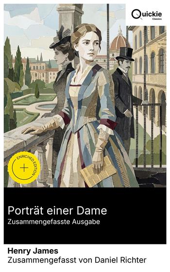 Porträt einer Dame erzählt die Geschichte der jungen Amerikanerin Isabel Archer, die in Europa ein Erbe, Bewunderer und eine frei gewählte Ehe findet, die sich als Käfig erweist. James entfaltet eine Studie von Freiheit, Begehren und sozialer Choreographie im Spannungsfeld der 'international theme', mit subtiler Ironie und psychologischer Tiefenschärfe. Durch fokalisierte Erzählperspektiven, erweiterte Szenen und innere Monologe macht der Roman die Arbeitsweise des Bewusstseins sichtbar; zugleich kartiert er die Macht feiner Manipulationen – nicht zuletzt durch Madame Merle und Gilbert Osmond – im gesellschaftlichen Realismus der 1880er Jahre. Henry James, in den USA geboren und zwischen Amerika und Europa pendelnd, verfeinerte in London und auf Reisen nach Italien seine Kunst, moralische Entscheidungen unter kulturellem Druck auszuloten. Seine Erfahrung als Expatriierter, sein Interesse an Wahrnehmung und an den 'unsichtbaren' Kräften der Konvention speisen diese Darstellung einer Frau, die ihre Selbstbestimmung behaupten will. James' bewusste Abkehr von sensationeller Handlung zugunsten der Ökonomie des Blicks erklärt, weshalb Porträt einer Dame zu seinen reifsten frühen Romanen zählt. Für Leserinnen und Leser, die psychologischen Realismus, Präzision und die langsame Entfaltung ethischer Konflikte schätzen, ist dieses Buch unverzichtbar. Es belohnt aufmerksames Lesen mit intellektueller Klarheit und emotionaler Komplexität – ein Klassiker, der die Moderne vorausdenkt. Quickie Classics fasst zeitlose Werke präzise zusammen, bewahrt die Stimme des Autors und hält die Prosa klar, schnell und gut lesbar – destilliert, niemals verwässert. Extras der erweiterten Ausgabe: Einführung · Zusammenfassung · Historischer Kontext · Autorenbiografie · Kurze Analyse · 4 Reflexionsfragen · Redaktionelle Fußnoten.