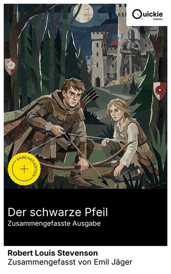 Im England der Rosenkriege verfolgt Stevenson die Initiation des jungen Richard "Dick" Shelton, der den Mord am Vater aufklären will und zwischen York und Lancaster gerät. Der Bund des Schwarzen Pfeils brandmarkt korrupte Ritter, voran Dicks Vormund Sir Daniel Brackley; Wälder, Burgen und Hinterhalte rahmen seine Begegnung mit Johanna Sedley, die sich als Knabe "John Matcham" tarnt. In archaisierendem, doch flüssigem Stil mischt der Roman Scottsche Historienromanze mit rasantem Abenteuer; balladenhafte Motive, präzise Topographie und die Ambivalenz von Treue, Recht und Selbstbehauptung strukturieren die Erzählung. Stevenson (1850–1894), schottischer Meister von Schatzinsel und Jekyll and Hyde, veröffentlichte The Black Arrow 1883 als Fortsetzungsroman in Young Folks (Pseudonym: "Captain George North") und revidierte ihn später. Krankheit, Reisen und an Scott sowie Dumas geschulte Vorlieben formten sein Interesse an der moralischen Bewährung Jugendlicher im Bürgerkrieg; dialogische Dynamik, klare Schauplätze und szenische Ökonomie bezeugen die Kontinuität seines Abenteuererzählens. Der Schwarze Pfeil empfiehlt sich Leserinnen und Lesern historischer Abenteuer sowie allen, die viktorianische Populärliteratur im Kontext der Rosenkriege studieren möchten. Zugänglich und atmosphärisch dicht, vereint das Buch Spannung mit Reflexion über Gerechtigkeit, Loyalität und Überleben. Als Pageturner und als Studienobjekt gleichermaßen ergiebig, gehört es in Unterricht, Bibliotheken und auf anspruchsvolle Leselisten. Quickie Classics fasst zeitlose Werke präzise zusammen, bewahrt die Stimme des Autors und hält die Prosa klar, schnell und gut lesbar – destilliert, niemals verwässert. Extras der erweiterten Ausgabe: Einführung · Zusammenfassung · Historischer Kontext · Autorenbiografie · Kurze Analyse · 4 Reflexionsfragen · Redaktionelle Fußnoten.