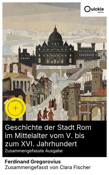 Dieses mehrbändige Werk verfolgt Roms Weg vom Ende der weströmischen Herrschaft bis zur Schwelle der Renaissance. Gregorovius verbindet quellengesättigte Recherche mit plastischer, gelegentlich episch schwingender Erzählung: Papsttum und Kommune, Colonna und Orsini, Rituale, Alltagsleben, Kunst und Topographie erscheinen in dichten Szenen. Romantische Anschaulichkeit trifft auf strenge Quellenkritik; Chroniken, Register, Inschriften und Ortsbegehungen tragen die Darstellung. Ferdinand Gregorovius (1821–1891), aus Ostpreußen, lebte lange in Rom und Italien, erschloss Archive, Bibliotheken und Ruinen und schärfte im Gehen seinen topographischen Blick. Liberale, protestantische Bildung und die Nach-1848er Debatten förderten seine Distanz zu apologetischen Geschichtsbildern. Zwischen 1859 und 1872 publiziert, wurde das Werk mehrfach revidiert und blieb sein lebensprägendes Projekt. Empfehlenswert für Mediävistinnen, Stadt- und Kunsthistoriker wie für neugierige Leser: Hier verbindet sich stoffliche Fülle mit klarer Synthese und erzählerischer Energie. Wer die Genese urbaner Ordnungen, die Symbolpolitik des Papsttums und die Lebenswelten der Stadt verstehen will, findet einen verlässlichen Kompass. Ein Klassiker, der Forschung und Lektüre gleichermaßen trägt. Quickie Classics fasst zeitlose Werke präzise zusammen, bewahrt die Stimme des Autors und hält die Prosa klar, schnell und gut lesbar – destilliert, niemals verwässert. Extras der erweiterten Ausgabe: Einführung · Zusammenfassung · Historischer Kontext · Kurze Analyse · 4 Reflexionsfragen · Redaktionelle Fußnoten.