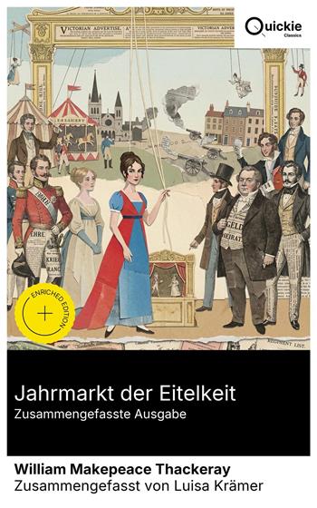 Jahrmarkt der Eitelkeit ist ein Roman ohne Helden, der das England der Regency- und Napoleonischen Kriege als satirisches Gesellschaftspanorama zeigt. Im Fokus stehen die Aufsteigerin Becky Sharp und ihre sanftmütige Kontrastfigur Amelia Sedley; mit George Osborne, Rawdon Crawley und Jos Sedley verknüpft, werden sie im Bann von Waterloo moralisch geprüft. Ein eingreifender Erzähler kommentiert ironisch, nutzt Puppenspiel-Metaphern, Karikatur und präzise Sozialbeobachtung; die ursprüngliche Lieferungspublikation verstärkt den episodischen Zug. William Makepeace Thackeray, 1811 in Kalkutta geboren, wandte sich nach dem Verlust seines Vermögens dem Journalismus und der Satire zu, unter anderem bei Punch, und illustrierte seine Texte selbst. Cambridge-Studien, Zeichnerpraxis, Kredit- und Eheerfahrungen schärften seinen skeptischen Blick auf Tugendrhetorik und Klassenprestige; daraus erwuchs der Impuls, Heirat, Krieg und Kapital als zusammenhängende moralische Ökonomie darzustellen. Empfohlen für Leserinnen und Leser des europäischen Realismus, die historische Präzision mit intellektueller Schärfe schätzen. Wer die Mechanik von Status, Geld und Gefühl verstehen will, findet hier eine brillante, zugleich unterhaltsame Analyse. Dieses Werk erweist sich als zeitgenössisch relevant und als verlässliche Schule kritischer Urteilsbildung. Quickie Classics fasst zeitlose Werke präzise zusammen, bewahrt die Stimme des Autors und hält die Prosa klar, schnell und gut lesbar – destilliert, niemals verwässert. Extras der erweiterten Ausgabe: Einführung · Zusammenfassung · Historischer Kontext · Autorenbiografie · Kurze Analyse · 4 Reflexionsfragen · Redaktionelle Fußnoten.