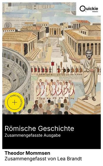 Mommsens Römische Geschichte, in sechs Bänden, verfolgt Roms Entwicklung von den italischen Anfängen über die Konflikte der Republik bis zur caesarischen Transformation und ergänzt die klassische Republikdarstellung durch zwei Bände über die Provinzen von Caesar bis Diokletian. Der energische, polemisch geschärfte Stil verbindet epigraphisch und numismatisch gesicherte Detailfülle mit institutionengeschichtlicher Analyse und brillanter Charakterzeichnung; Senatsaristokratie, Volksbewegungen und Militär erscheinen als strukturierte Kräftefelder, Julius Caesar als Kulminationsfigur staatlicher Reform – eine bewusst streitbare Perspektive des 19. Jahrhunderts. Theodor Mommsen (1817–1903), Jurist und Epigraphiker, Begründer des Corpus Inscriptionum Latinarum und Literaturnobelpreisträger von 1902, verband philologische Strenge mit politischer Praxis als liberale Stimme in Preußen und im Reich. Jahrzehnte der Arbeit an Inschriften, Rechts- und Verwaltungstexten gaben ihm die Materialmacht, aus der seine Caesar-Deutung, seine Kritik der Oligarchie und sein Sinn für ökonomische und rechtliche Strukturen erwuchsen. Empfohlen sei diese Gesamtausgabe allen, die Roms Republik und Imperium systematisch verstehen und zugleich die Genese moderner Altertumswissenschaft nachvollziehen wollen. Sie bietet ein intellektuelles Panorama, das – bei aller Zeitgebundenheit – Quellennähe mit erzählerischer Kraft verbindet und bis heute zu Widerspruch und Erkenntnis anregt: ein Klassiker, der Denken schärft und Maßstäbe setzt. Quickie Classics fasst zeitlose Werke präzise zusammen, bewahrt die Stimme des Autors und hält die Prosa klar, schnell und gut lesbar – destilliert, niemals verwässert. Extras der erweiterten Ausgabe: Einführung · Zusammenfassung · Historischer Kontext · Autorenbiografie · Kurze Analyse · 4 Reflexionsfragen · Redaktionelle Fußnoten.