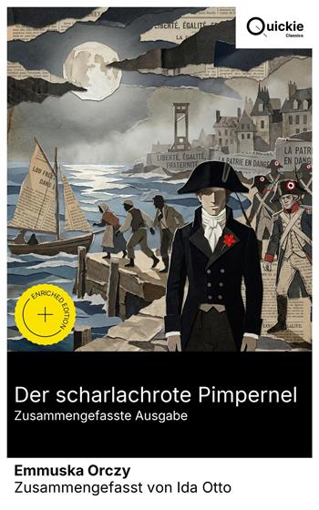 Der Scharlachrote Pimpernel (1905) spielt in der Schreckensherrschaft der Französischen Revolution: Unter dem Emblem einer scharlachroten Nelke führt der britische Dandy Sir Percy Blakeney eine Rettungsorganisation, die Verfolgte über den Kanal schmuggelt. Orczy mischt mantel-und-degenhafte Action, Spionagekniff und Romanze – samt der belasteten Ehe mit Marguerite St. Just – in einer von der Bühne geschulten, dialogstarken Prosa. Als konservative Gegenlektüre zur Revolutionslegende begründet der Roman das Muster des maskierten Doppelgängers. Emmuska "Baroness" Orczy (1865–1947), in Ungarn geboren und in London heimisch, begann als Künstlerin und arbeitete mit ihrem Mann Montagu Barstow zunächst fürs Theater; die Bühnenfassung von 1903 bereitete den Romanerfolg. Erfahrungen eines verarmten Adels, Diaspora-Erfahrungen und edwardianischer Patriotismus prägten ihre Skepsis gegenüber jakobinischem Terror ebenso wie ihre Vorliebe für aristokratische Ehrenkodizes und theatrale Maskerade. Empfehlenswert für Leserinnen und Leser historischer Abenteuer, Spionage- und Identitätsromane sowie für Dumas- und Sabatini-Liebhaber. Als stilbildender Vorläufer des Maskenhelden liefert der Text zugleich reiches Material für kulturhistorische und literaturwissenschaftliche Lektüren—ein spannendes, ideologisch transparentes Dokument seiner Epoche mit ungebrochener erzählerischer Sogkraft. Quickie Classics fasst zeitlose Werke präzise zusammen, bewahrt die Stimme des Autors und hält die Prosa klar, schnell und gut lesbar – destilliert, niemals verwässert. Extras der erweiterten Ausgabe: Einführung · Zusammenfassung · Historischer Kontext · Autorenbiografie · Kurze Analyse · 4 Reflexionsfragen · Redaktionelle Fußnoten.
