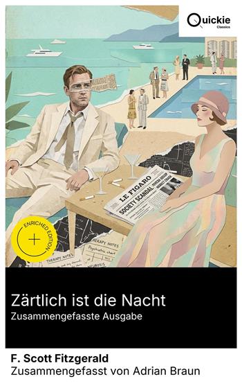 Zärtlich ist die Nacht erzählt die Geschichte des schillernden Expatriatenpaares Dick und Nicole Diver an der Riviera, deren makellose Oberfläche unter dem Druck von Begehren, Krankheit und sozialem Ritual zerbricht. Mit modernistischer Montage, perspektivischen Verschiebungen und einer damals kühnen, nichtlinearen Anordnung verknüpft Fitzgerald Schauplätze von Zürich bis Paris. Lyrische, funkelnde Prosa kontrastiert mit der nüchternen Anatomie von Psychiatrie, Ehe und amerikanischer Selbstverzauberung in der Zwischenkriegszeit. Fitzgerald, Chronist des Jazz Age, schrieb den Roman im Schatten eigener Krisen: Zelda Fitzgeralds psychische Erkrankung und Klinikaufenthalte in der Schweiz und den USA, seine Alkoholprobleme sowie finanzielle und berufliche Erschöpfung. Recherchen zur Psychoanalyse und Aufenthalte an der Côte d'Azur fließen erkennbar ein. Die 1934 erschienene Fassung nutzte Rückblenden; eine spätere, 1951 verbreitete Edition ordnete die Handlung chronologisch – ein Hinweis auf Fitzgeralds Ringen um Form und Deutung. Für Leserinnen und Leser, die psychologische Genauigkeit, formale Raffinesse und elegante Prosa suchen, ist Zärtlich ist die Nacht eine zwingende Wahl. Der Roman beleuchtet die ethischen Kosten von Charme, Heilung und Macht und bleibt als Studie über Liebe, Abhängigkeit und Klassenhintergrund erschütternd aktuell. Wer Textgenese und Wirkung vergleichen möchte, sollte zur Originalfassung von 1934 greifen – und den Glanz dieser tragischen Welt bewusst langsam lesen. Quickie Classics fasst zeitlose Werke präzise zusammen, bewahrt die Stimme des Autors und hält die Prosa klar, schnell und gut lesbar – destilliert, niemals verwässert. Extras der erweiterten Ausgabe: Einführung · Zusammenfassung · Historischer Kontext · Autorenbiografie · Kurze Analyse · 4 Reflexionsfragen · Redaktionelle Fußnoten.