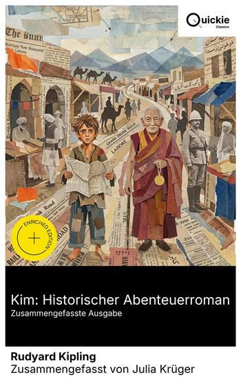 Kim erzählt die Odyssee des irischstämmigen Waisen Kimball O'Hara durch das koloniale Indien des späten 19. Jahrhunderts: vom Basar von Lahore über die Grand Trunk Road bis in die Vorberge des Himalaya. Zwischen der spirituellen Pilgerschaft an der Seite eines tibetischen Lamas, der den Fluss des Pfeils sucht, und der Rekrutierung in den Geheimdienst des Raj entfaltet Kipling eine doppelte Bewegung aus Bildungsroman und Spionageabenteuer, picaresker Episodenfolge und ethnografischer Miniatur. Der polyphone, dialektgesättigte Stil verbindet Topografie, Ritual, Handelswege und das "Great Game" zu einer vielschichtigen, ambivalenten Imperiums-Chronik. Kipling, 1865 in Bombay geboren, prägten frühe Indienjahre, eine harte Schulzeit in England und journalistische Arbeit in Lahore; als Reporter der Civil and Military Gazette lernte er Sprachen, Milieus und Hierarchien des Raj aus nächster Nähe kennen. Seine imperiale Loyalität und sein ethnografischer Blick – später mit dem Nobelpreis 1907 geadelt – verdichten sich in Kim (1901) zu einer poetischen Kartografie des "Great Game". Empfohlen sei dieser historische Abenteuerroman allen, die rasante Handlung mit intellektueller Tiefenschärfe suchen: Leserinnen und Leser von Spionageliteratur, Reiseliteratur und Postkolonialstudien finden hier gleichermaßen Anregung. Kim überzeugt als lebendiges Archiv von Stimmen und Wegen – und als Klassiker, der Imperium, Identität und Zugehörigkeit produktiv zur Diskussion stellt. Quickie Classics fasst zeitlose Werke präzise zusammen, bewahrt die Stimme des Autors und hält die Prosa klar, schnell und gut lesbar – destilliert, niemals verwässert. Extras der erweiterten Ausgabe: Einführung · Zusammenfassung · Historischer Kontext · Autorenbiografie · Kurze Analyse · 4 Reflexionsfragen · Redaktionelle Fußnoten.