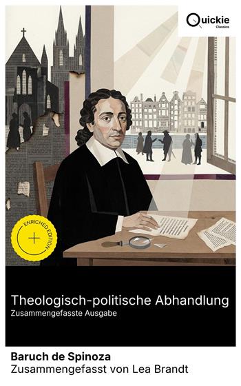 Die Theologisch-politische Abhandlung entwickelt in strenger, nüchterner Prosa ein Programm der Trennung von Theologie und Philosophie. Mit historisch-philologischer Bibelkritik zeigt Spinoza, dass die Schrift Lehre der Frömmigkeit, nicht der Natur ist, und dass Recht und Souveränität aus vernünftiger Gesetzgebung hervorgehen. Gegen Aberglauben und kirchliche Macht verteidigt er die libertas philosophandi, begründet Rede- und Gewissensfreiheit als Staatsgrund, favorisiert demokratische Institutionen und tritt im Kontext der niederländischen Republik in einen kritischen Dialog mit Hobbes und der Scholastik. Spinoza, 1632–1677, entstammte der portugiesisch-jüdischen Gemeinde Amsterdams und wurde 1656 exkommuniziert – eine Erschütterung, die seine intellektuelle Autonomie radikalisierte. Als Linsenschleifer und freier Denker, geprägt von Descartes, schrieb er auf Latein und bewegte sich im Kreis republikanischer Gelehrter. Anonyme Publikation 1670, scharfe Zensur und sein Verzicht auf einen Heidelberger Lehrstuhl 1673 erklären den Impuls des Buches: die philosophische Forschung vor religiöser und obrigkeitlicher Einmischung zu schützen. Dieses Buch empfiehlt sich allen, die die Grundlagen moderner Säkularität und Toleranz verstehen wollen. Es verbindet methodische Strenge mit politischer Klarsicht und bleibt für Theologen, Politische Theoretiker und Bürger eine provokative, klärende Lektüre über Freiheit, Religion und Staat. Quickie Classics fasst zeitlose Werke präzise zusammen, bewahrt die Stimme des Autors und hält die Prosa klar, schnell und gut lesbar – destilliert, niemals verwässert. Extras der erweiterten Ausgabe: Einführung · Zusammenfassung · Historischer Kontext · Autorenbiografie · Kurze Analyse · 4 Reflexionsfragen · Redaktionelle Fußnoten.
