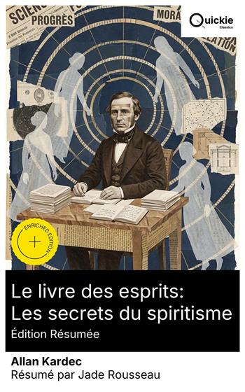 Le Livre des Esprits: Les secrets du Spiritisme (1857) fonde la doctrine spirite sous forme de questions-réponses aux « Esprits supérieurs ». En quatre volets — causes premières, monde des esprits, lois morales, espérances et consolations — Kardec propose une métaphysique ordonnée. Style didactique, catéchistique et sobre; contexte: XIXe siècle entre positivisme et renouveau spiritualiste, avec visée éthique de perfectibilité. Allan Kardec, pseudonyme d'Hippolyte Léon Denizard Rivail, pédagogue formé auprès de Pestalozzi, transpose rigueur et classification à son enquête. D'abord sceptique face aux tables tournantes parisiennes, il multiplie les séances et recoupements, instituant le « contrôle universel des enseignements des Esprits ». Sa Revue spirite et la Société d'études spirites fournissent un cadre, dans une époque cherchant à concilier science, foi et réforme morale. Je recommande cet ouvrage à quiconque s'intéresse à l'histoire intellectuelle, aux études religieuses ou aux débats science/spiritualité. Comme source primaire, il se lit autant pour sa systématicité que pour son ambition morale. À aborder avec esprit critique, mais avec curiosité: la clarté de l'exposé en fait une porte d'entrée précieuse, à compléter par Le Livre des Médiums. Quickie Classics résume avec précision des œuvres intemporelles, préserve la voix de l'auteur et maintient une prose claire, rapide et lisible – distillée, jamais diluée. Suppléments de l'édition enrichie : Introduction · Synopsis · Contexte historique · Biographie de l'auteur · Brève analyse · 4 questions de réflexion · Notes de l'éditeur.