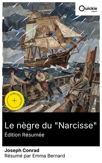 Situé sur le voilier « Narcisse » en route de Bombay à Londres, Le Nègre du « Narcisse » met à l'épreuve la solidarité d'un équipage quand embarque James Wait, marin noir déclaré mourant. Tempête, quasi-mutinie fomentée par Donkin, manœuvres et promiscuité révèlent l'éthique du devoir et l'ambiguïté de la compassion. Narrateur au « nous » et prose impressionniste, rythmée et sensorielle, ancrent ce roman fin-de-siècle aux seuils du modernisme, dans la lignée du grand récit maritime. Conrad, né Józef Korzeniowski en Pologne, officier de la marine marchande avant d'écrire en anglais, recycle ici des souvenirs de bord et un regard d'exilé sur l'autorité et la loyauté. Composé en 1897, en voisinage de la Préface-manifeste du « faire voir », il mêle naturalisme descriptif et finesse psychologique héritée de Flaubert. Je recommande ce livre à quiconque s'intéresse aux origines du modernisme, à l'éthique du travail collectif et à la mer comme laboratoire moral. Qu'on lise une édition annotée: le lexique racial daté heurte, mais éclaire la dynamique de groupe et sa beauté sombre. Quickie Classics résume avec précision des œuvres intemporelles, préserve la voix de l'auteur et maintient une prose claire, rapide et lisible – distillée, jamais diluée. Suppléments de l'édition enrichie : Introduction · Synopsis · Contexte historique · Biographie de l'auteur · Brève analyse · 4 questions de réflexion · Notes de l'éditeur.
