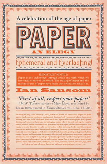 From the author of The Bad Book Affair comes a witty, personal, and entertaining meditation on the history and significance of paper—an international cultural study and a series of personal reflections on the meaning of this essential product. Let us suppose for a moment that paper were to disappear. Would anything be lost? Everything would be lost. Paper surrounds us. Not only as books, letters and diaries, but as beer mats and birth certificates, board games and business cards, fireworks and flypaper, photographs and playing cards, tickets and tea bags. We are paper people. But the age of paper is coming to an end. E-books regularly outsell physical books. E-tickets replace the paper variety. Archives are digitized. The world we know was made from paper, and yet everywhere we look, paper is beginning to disappear. As we enter a world beyond paper, Ian Sansom explores the paradoxes of the greatest of man-made materials and shows how some kinds of paper, and the ghosts and shadows of paper, will always be with us. Paper: An Elegy is a history of paper in all its forms and functions. Both a cultural study and a series of personal reflections on the meaning of paper, this book is a timely meditation on the very paper it is printed on.