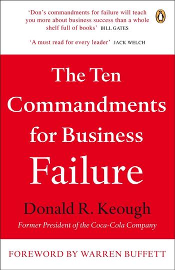 “After a lifetime in business, I’ve never been able to develop a set of rules or a step-by-step formula that will guarantee success in anything, much less in a field as dynamic and changing as business. What I can do, however, is talk about how to lose. I guarantee that anyone who follows my formula will be a highly successful loser.” The Ten Commandments for Business Failure is a lighthearted cautionary bible for leaders from a hugely admired elder statesman who is sought out for advice by a wide circle of luminaries. Plenty of speakers and writers are happy to dispense advice on how to succeed in business. From football coaches to ex-CEOs to psychologists to preachers, success gurus are everywhere. But none of them can offer any guarantees; the true path to success can’t be laid out as a simple step-by-step plan. The same cannot be said of failure, however. Failure is easy. In fact, there are ten serious blunders companies and individuals make over and over again, leading to failure so consistently that the list ought to be written in stone. Don Keough, who has seen and heard a lot in his six decade career, calls them his Ten Commandments for Business Failure. They include such reliable bad advice as Quit Taking Risks, Be Inflexible, Assume Infallibility, Put All Your Faith in Experts, and Be Afraid of the Future.