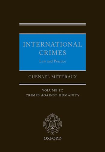 Judge Mettraux's four-volume compendium, International Crimes: Law and Practice, will provide the most detailed and authoritative account to-date of the law of international crimes. It is a scholarly tour de force providing a unique blend of academic rigour and an insight into the practice of international criminal law. The compendium is un-rivalled in its breadth and depth, covering almost a century of legal practice, dozens of jurisdictions (national and international), thousands of decisions and judgments and hundreds of cases. This second volume discusses in detail crimes against humanity.