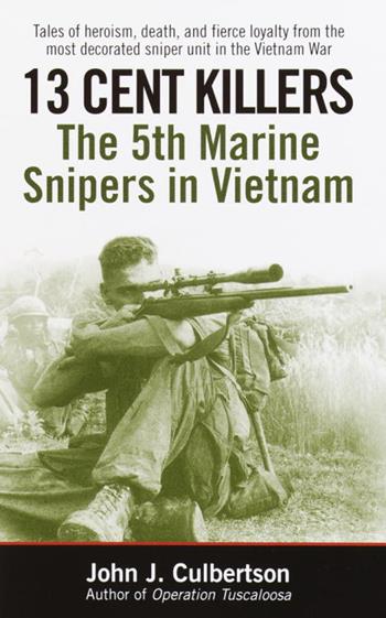 “It’s not easy to stay alive with a $1,000 bounty on your head.” In 1967, a bullet cost thirteen cents, and no one gave Uncle Sam a bigger bang for his buck than the 5th Marine Regiment Sniper Platoon. So feared were these lethal marksmen that the Viet Cong offered huge rewards for killing them. Now noted Vietnam author John J. Culbertson, a former 5th Marine sniper himself, presents the riveting true stories of young Americans who fought with bolt rifles and bounties on their heads during the fiercest combat of the war,from 1967 through the desperate Tet battle for Hue in early ’68. In spotter/shooter pairs, sniper teams accompanied battle-hardened Marine rifle companies like the 2/5 on patrols and combat missions. Whether fighting their way out of a Viet Cong “kill zone” or battling superior numbers of NVA crack troops, the sniper teams were at the cutting edge in the art of jungle warfare, showing the patience, stealth, combat marksmanship, and raw courage that made the unit the most decorated regimental sniper platoon in the Vietnam War. Harrowing and unforgettable, these accounts pay tribute to the heroes who made the greatest sacrifice of all–and leave no doubt that among 5th Marine snipers uncommon valor was truly a common virtue.