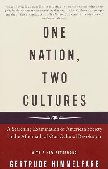 In One Nation, Two Cultures, one of today's most respected and articulate cultural critics gives us a penetrating examination of the gulf between the two sides of American society -- a divide that cuts across class, racial, ethnic, political, and sexual lines. While one side originated in the traditional idea of republican virtue, the other emerged from the counterculture of the late 1960s and has become the dominant culture of today. In clear and vigorous prose, Himmelfarb argues that while the dominant culture pervades journalism, academia, television, and film, a "dissident culture" continues to promote the values of family, a civil society, sexual morality, privacy, and patriotism. The clash between these two cultures affects all areas of American society. Despite her forceful critique, Himmelfarb sees encouraging signs for the future of American culture. She explores the place of religion, family, and the law in American life and proposes democratic remedies for the nation's moral and cultural diseases. Though there are many legitimate grievances against government, she contends, our citizenry cannot afford to delegitimize it. And she concludes that it is a tribute to Americans that, without serious social strife, we remain one nation even as we are divided into two cultures. One Nation, Two Cultures is a stimulating work, one sure to provoke lively discussion and controversy.