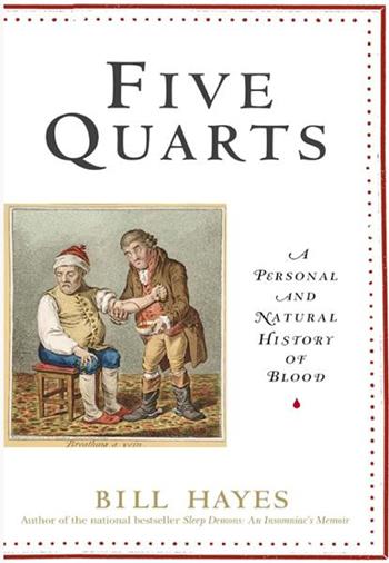“We’re born in blood. Our family histories are contained in it, our bodies nourished by it daily. Five quarts run through each of us, along some sixty thousand miles of arteries, veins, and capillaries.” –fromFive Quarts In the national bestseller Sleep Demons, Bill Hayes took us on a trailblazing trip through the night country of insomnia. Now he is our guide on a whirlwind journey through history, literature, mythology, and science by means of the great red river that runs five quarts strong through our bodies. Profusely illustrated, the journey stretches from ancient Rome, where gladiators drank the blood of vanquished foes to gain strength and courage, to modern-day laboratories, where high-tech machines test blood for diseases and dedicated scientists search for elusive cures. Along the way, there will be world-changing triumphs: William Harvey’s discovery of the circulation of the blood; Antoni van Leeuwenhoek’s advances in making the invisible world visible in the early days of the microscope; Dr. Paul Ehrlich’s Nobel-Prize-winning work in immunology; Dr. Jay Levy’s codiscovery of the virus that causes AIDS. Yet there will also be ignorance and tragedy: the widespread practice of bloodletting via incision and the use of leeches, which harmed more than it healed; the introduction of hemophilia into the genetic pool of nineteenth-century European royalty thanks to the dynastic ambitions of Queen Victoria; the alleged spread of contaminated blood through a phlebotomist’s negligence in modern-day California. This is also a personal voyage, in which Hayes recounts the impact of the vital fluid in his daily life, from growing up in a household of five sisters and their monthly cycles, to coming out as a gay man during the explosive early days of the AIDS epidemic in San Francisco, to his enduring partnership with an HIV-positive man. As much a biography of blood as it is a memoir of how this rich substance has shaped one man’s life, Five Quarts is by turns whimsical and provocative, informative and moving. It will get under your skin.
