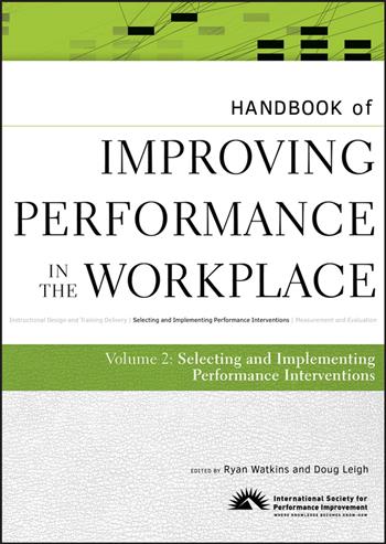 HANDBOOK of IMPROVING PERFORMANCE IN THE WORKPLACE Volume 2: Selecting and Implementing Performance Interventions In this groundbreaking volume, leading practitioners and scholars from around the world provide an authoritative review of the most up-to-date information available on performance interventions, all presented within a holistic framework that helps ensure the accomplishment of significant results. Addressing more than 30 performance interventions, with such varied topics as Incentive Systems, e-Learning, Succession Planning and Executive Coaching, this volume guides readers through the development of comprehensive performance improvement systems. Each chapter illustrates in practical terms how to select, plan, implement, and manage performance interventions, as well as how to evaluate their results. Through best practices research, comparative analysis, illustrative case studies from around the world, and editorial guidance on how to link together diverse interventions, the handbook is an important guide for achieving desired results in the workplace and beyond. Sponsored by International Society for Performance Improvement (ISPI), the Handbook of Improving Performance in the Workplace, three-volume reference, covers three main areas of interest including Instructional Design and Training Delivery, Selecting and Implementing Performance Interventions, and Measurement and Evaluation.