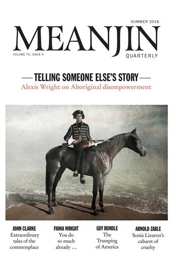 In the summer edition of Meanjin, Miles Franklin award winner Alexis Wright puts a challenging question: who should have the right to tell Aboriginal stories? Guy Rundle considers the Donald Trump victory and the changing state of US politics. Katharine Murphy reflects on the passing tides of parenthood, Tim Dunlop wonders what we'll all do in a world that has moved beyond work, Arnold Zable looks at the resilient beauty that can come from the depths of evil inhumanity. There's new memoir from Fiona Wright, fiction from John Kinsella and Beejay Silcox, and a fresh brace of new Australian poetry, including work by Anna Kerdijk Nicholson and Geoff Page. Plus, Commonplace: a new regular column from the legendary John Clarke.