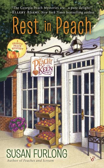 In the refreshing new Georgia Peach Mystery from the author of Peaches and Scream, an upcoming debutante ball turns into the pits when a juicy murder scandalizes a small town. The annual Peach Cotillion, Cays Mill, Georgia’s biggest event, is fast approaching and Nola Mae Harper is just as excited as the rest of the town—even though she’s busy juggling both the cotillion dinner and the grand opening of her new shop, Peachy Keen. But she never expected that plans for the cotillion would end up in the pits because of the cutthroat competition between local debutantes. When Vivien Crenshaw, insufferable church organist and despised mother of the town’s spoiled-rotten Peach Queen, is stabbed to death, the police turn to Nola’s friend Ginny as prime suspect. Apparently the two had fought over a one-of-a-kind cotillion gown. As Nola steps in to prove Ginny’s innocence she soon finds herself picking through a bushel of suspects, twice as many motives, and at the mercy of a killer all too keen on killing again. INCLUDES RECIPES!