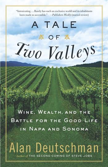 When acclaimed journalist Alan Deutschman came to the California wine country as the lucky house guest of very rich friends, he was surprised to discover a raging controversy. A civil war was being fought between the Napa Valley, which epitomized elitism, prestige and wealthy excess, and the neighboring Sonoma Valley, a rag-tag bohemian enclave so stubbornly backward that rambunctious chickens wandered freely through town. But the antics really began when new-money invaders began pushing out Sonoma’s poets and painters to make way for luxury resorts and trophy houses that seemed a parody of opulence. A Tale of Two Valleys captures these stranger-than-fiction locales with the wit of a Tom Wolfe novel and uncorks the hilarious absurdities of life among the wine world’s glitterati. Deutschman found that on the weekends the wine country was like a bunch of gracious hosts smiling upon their guests, but during the week the families feuded with each other and their neighbors like the Hatfields and McCoys. Napa was a comically exclusive club where the super-rich fought desperately to get in. Sonoma’s colorful free spirits and iconoclasts were wary of their bohemia becoming the next playground for the rapacious elite. So, led by a former taxicab driver and wine-grape picker, a cheese merchant, and an artist who lived in a barn surrounded by wild peacocks, they formed a populist revolt to seize power and repel the rich invaders. Deutschman’s cast of characters brims with eccentrics, egomaniacs, and a mysterious man in black who crashed the elegant Napa Valley Wine Auction before proceeding to pay a half-million dollars for a single bottle. What develops is nothing less than a battle for the good life, a clash between old and new, the struggle for the soul of one of America’s last bits of paradise. A dishy glimpse behind the scenes of a West Coast wonderland, A Tale of Two Valleys makes for intoxicating reading.