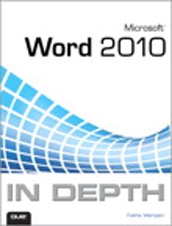 Beyond the Basics…Beneath the Surface…In Depth Microsoft Word 2010 IN DEPTH Advice and techniques that you need to get the job done. Looking for ways to streamline your work so you can focus on maximizing your time? In Depth provides specific, tested, and proven solutions to the problems you run into every day—things other books ignore or oversimplify. This is the one book you can rely on to answer the questions you have now and will have in the future. In Depth offers Comprehensive coverage with detailed solutions Breakthrough techniques and shortcuts that are unavailable elsewhere Practical, real-world examples with nothing glossed over or left out Troubleshooting help for tough problems you can’t fix on your own Outstanding authors recognized worldwide for their expertise and teaching style Quick information via sidebars, tips, reminders, notes, and warnings In Depth is the only tool you need to get more done in less time!