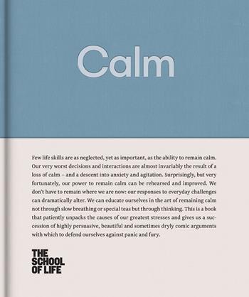 A NEW APPROACH TO MINDFULNESS: from The School of Life. AN ENCOURAGING GUIDE TO MANAGING OUR EMOTIONS **PRACTICAL LIFE SKILLS:**for how to find-and remain-calm. PART OF THE SCHOOL OF LIFE LIBRARY SERIES: other titles include Small Pleasures, Relationships, and Great Thinkers.
