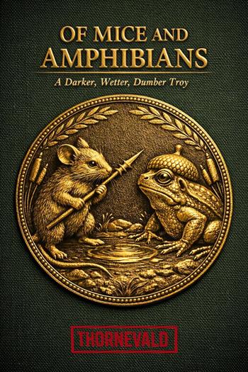 On an unremarkable Tuesday morning beside a body of water too small to appear on any map, two creatures meet at the edge of a pond. The frog king speaks at length about the sacred geometry of the reed-bed. The mouse says: past the second lily pad, the bottom drops away. Go left, not right. The frog king does not listen. Midway across the channel, a snake breaks the surface. The frog dives — instinct, no malice, the abrupt competence of an animal returning to the element it understands. The mouse goes under. The outrage begins before anyone asks what actually happened, which means the question is no longer being asked. The council of the Eastern Bank convenes. The council of the High Bank convenes. The obvious peaceful solution is proposed by a very small mouse named Bubble-Quiet, who has been managing the grain stores for thirty years and who has been right seventeen times and changed nothing. The drums begin. Of Mice and Amphibians is a dark satirical retelling of the ancient Greek mock-epic Batrachomyomachia — the war between frogs and mice — narrated by an Official Chronicler, Third Tier, Unclassified, who starts with full epic protocol (the Muse, the invocation, the grand framing of the trivial as the universal) and ends staring at a list of names in a margin he can't stop writing in, and a flask that is empty, and a marsh that is still exactly what it is. The epic machinery runs in full: the diplomatic breakdown, the mobilisation, the arms made from walnut shells and fire-hardened thorns, the first battle that is briefly, terribly funny, and then isn't. The catalog of the fallen, which the chronicler tries to execute with full genealogical rigour and cannot. The divine debate — gods arguing about their bets while, below, a mouse named Reed-Holder drowns in the quiet, fast way that drowning actually happens. The final battle, interrupted by a heron with no interest in either army's military calendar. Underneath the comedy is something that accumulates and doesn't leave: the cost of knowing what started a war and starting it anyway. The cost of being Bubble-Quiet. The cost of being the one who asked and was shushed. The two kings declare victory. The chronicler writes *no* in the margin in very small letters, crosses it out, writes it again. Of Mice and Amphibians: Troy, but wetter, and more honest about what Troy was.