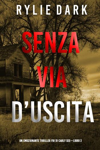 Delle donne stanno scomparendo mentre tornano a casa la sera, e i loro corpi vengono trovati il giorno dopo, posizionati come famose sculture. L’agente speciale dell’FBI (e medium mentale) Carly See deve decifrare il mistero, e si trova impegnata in una folle corsa per trovare l’assassino e salvare la prossima vittima prima che sia troppo tardi. SENZA VIA D’USCITA (Un emozionante thriller FBI di Carly See) è il secondo libro di una raggelante nuova serie firmata dall’autore del giallo e della suspense Rylie Dark, che ha inizio con SENZA VIA DI SCAMPO (libro #1). L’agente speciale dell’FBI Carly See, una stella nell’élite della sezione di analisi comportamentale, nasconde un terribile segreto: può parlare con i morti. L’omicidio di sua sorella, ancora irrisolto, ha fatto precipitare la sua vita nel dolore e ha risvegliato un nuovo potere dentro di lei. A volte i messaggi giungo dal contatto diretto, altre volte nei sogni. Sembra tutto quanto una maledizione, fino a che Carly si rende conto che può utilizzare le sue nuove abilità per risolvere i suoi casi. Ma le sue doti sono inaffidabili, e Carly deve usare la sua mente brillante per completare il puzzle, mentre nel frattempo lotta per mantenere il segreto davanti ai suoi colleghi. Con le sue visioni che la guidano in luoghi oscuri e irrazionali, Carly si trova a giocare al gatto e al topo con un diabolico assassino, che sembra essere sempre un passo davanti a lei. Perché sta sistemando in questo modo i cadaveri? Cosa sta tentando di creare? Un thriller emozionante, pieno zeppo di svolte e colpi di scena, segreti e sorprese che non ti aspetti, la serie di CARLY SEE è un giallo che ti farà affezionare a un nuovo e unico personaggio, costringendoti a leggere fino a tarda notte. È ora disponibile il libro #3 della serie: NESSUN MODO PER TORNARE A CASA.