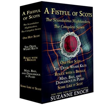 Rugged highlanders and beautiful lasses abound in A Fistful of Scots, the complete stunning Scottish historical romance series from New York Times bestselling author Suzanne Enoch, now in an amazingly low-priced ebook bundle. The Devil Wears Kilts On a mission to rescue his runaway sister from the lure of London flowery compliments and a useless lot of satin-clad scalawags disguised by their snooty titles, Ranulf MacLawry, Marquis of Glengask, has roared into British society like a storm across the Scottish Highlands. But he's about to find out that satin has its appeal, especially when it covers the curves of Miss Lady Charlotte Hanover, whose tongue is as sharp as her skin is soft . . . Rogue with a Brogue Stuck in a Mayfair ballroom thanks to his lovestruck brother, Highlander Arran MacLawry wants nothing but a bit of distraction from an arranged betrothal--and a clever auburn-haired lass in a vixen's mask promises just that . . . until he discovers that she's the granddaughter of the Campbell, chief of clan MacLawry's longtime rival. Despite their families' grudging truce, falling for fiery Mary Campbell is a notion too outlandish even for this Highlander . . . but yet he can’t get the bewitching lass out of his mind . . . Mad, Bad, and Dangerous in Plaid High-spirited Rowena MacLawry has returned to the Highlands after a spectacularly successful debut Season in London, and has made it painfully clear that she's outgrown her girlhood obsession with Lachlan MacTier. That's just fine with him, as he never had any intention of marrying the lass anyway! Yet how can he ignore the fact that the once rough and tumble Winnie has become a very fashionable--and incredibly desirable--young woman . . . Some Like It Scot When a mad lass in trousers shoots at him, Munro "Bear" MacLawry isn't sure what impresses him more--the girl's sure aim or her irresistibly tempting curves. Catriona MacColl has fled to the Highlands with her half-sister to escape an unwanted wedding, and wants no part of him, nor any man. But he can't abandon the flame-haired, sharp-tongued wildcat now that he's discovered her--not when she fits so perfectly in his arms . . .