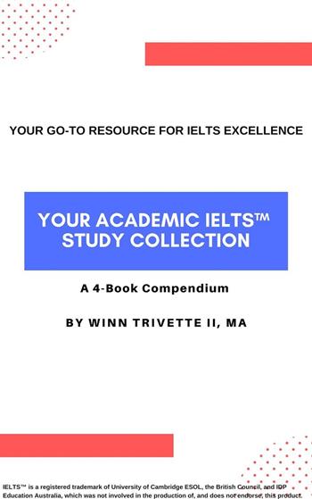 Your Academic IELTS™ Study Collection is a bundle of 4 books to help improve your skills for a higher Academic IELTS score on exam day. The 4 books are: Book 1: 15 Habits of Highly Successful IELTS Candidates Book 2: 23 Keys for Academic IELTS Success Book 3: 27 Keys to Better English Grammar Book 4: 303 Vocabulary Words You Need Get Your Academic IELTS™ Study Collection written by a certified veteran IELTS teacher who has helped candidates just like you to achieve their optimal score. Confidently prepare for and perform on exam day so you are ready to maximize your IELTS! Learn the same practical advice the author offers his own students in this complete 4-book collection full of resources to enhance your IELTS preparation. Take advantage of the author's more than 10 years of experience and knowledge of the Academic IELTS exam. Study the English grammar and vocabulary lessons so you are better prepared on exam day. Get your copy of Your Academic IELTS™ Study Collection and increase both your IELTS and English skills for an optimal exam score.