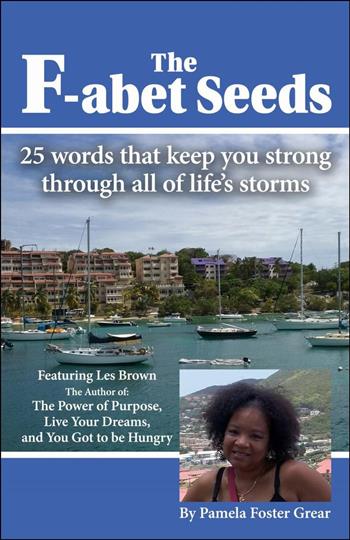 The F-abet Seeds – 25 Words that keep you strong through all of the life storms is a motivational book by Pam Grear, a Columbus, Ohio author and motivational speaker. The word abets means to assist, lend a hand to or help. Each of the 15 words presented here begins with the letter "f". Each word gives assistance to our daily living for positive thinking and affirmations. Pam gives a thought-provoking concept to each word that is truly fitting for any situation.The "F-words" are: First, Free Yourself, Faith Focus, Firm, Fight, Fresh, Finish, Favor Freedom, Fulfillment, Finance, Future, Fruitful, Fear, Failure, Fabulous Forgiveness, Friend, Follow-up, Fret, Flourish, Flowing, Foster.In the comments by Les Brown, Les gives a good description of the book: "F-abet Seeds was written to give a sense of protection, calm and inner strength in the midst of painful storms we invariably encounter just living life. Pamela Grear the author, entrepreneur and motivational speaker takes us by the hand and leads us down a path where F-abet Seeds are used as tools to lay a foundation and building blocks to withstand whatever life throws in our direction.Pam dedicates the book "…to all the people who have reached for happiness and could not find it. It is my desire that through the words God has given me, I may be able to bless you."