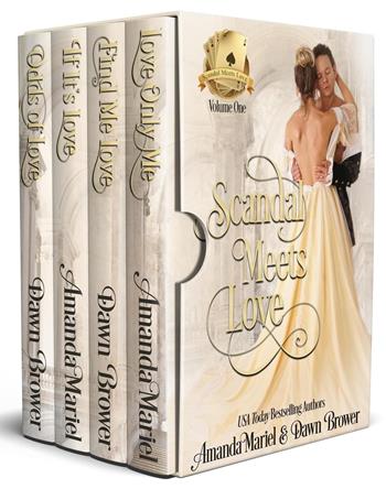 Read the first four books in the Scandal Meets Love series in this limited edition compilation and discover how the best scandals lead to true love. Love Only Me by Amanda Mariel: Seth Blakely, the Duke of Blackmore is captivated by Lady Narissa and determined to learn more about the headstrong, unconventional beauty. Never mind that all she wishes is for him to be gone and his memory of her all Ladies gaming hell forgotten. Passion pulls the two together as they discover that love is more important than the obligations and loyalties that threaten to keep them apart. Find Me Love by Dawn Brower: After a chance encounter at one of Lady Diana's fencing matches Luther Wright, the Earl of northeast decides to court her. Her strong will and his need to protect her clash—only time will tell if they are able to find a way past their differences, and in turn, an enduring love. If It's Love by Amanda Mariel: Much to her dismay, Lady Hannah finds herself smitten with Graham Fulton, the Marquess of Ramsbury. A state she knows is hazardous to her freedom, but she is powerless to fight her growing attraction. She soon discovers that one shared kiss is not nearly enough, but dare she give in to her desire? Odds of Love by Dawn Brower: Lady Katherine and Bennett Evans, the Marquess of Holton cross paths, and words, with each other. Sparks fly and before long passion starts brewing between them. The odds of them finding love could improve or very well lead to their downfall.