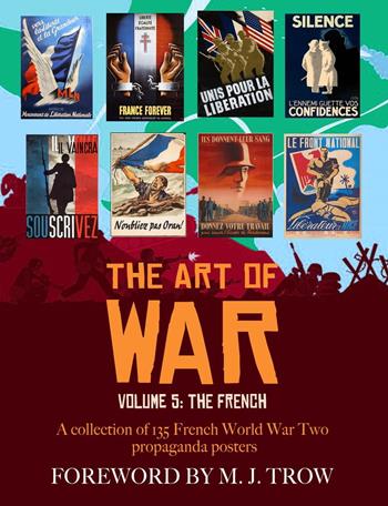 THE ART OF WAR: VOLUME 5 IS A COLLECTION OF 135 FRENCH WORLD WAR TWO PROPAGANDA POSTERS. INCLUDES A FOREWORD BY HISTORIAN M. J. TROW. Propaganda during the Second World War was an unavoidable aspect of daily life. It must be a situation that is hard to relate to for those of us in the West born too late or too young to remember the war or the decades afterwards. The idea that you must always be alert to the ominous drone of the air-raid sirens as you went about your business, or that your home could be destroyed in an aerial bombardment at any moment is very hard to comprehend. But those who lived through the war knew it was perfectly possible that the Wehrmacht could soon be marching through the streets, with all the chaos, fear, death and destruction that that would imply. Against this backdrop we can understand why propaganda was so vital to all sides of the conflict. For those interested in the psychology of the past, propaganda posters are a great glimpse into the (understandable) paranoia, hysteria and concerns of those who created them, and the message they thought it was necessary to promote to everyone else. All of these posters served some sort of purpose, and modern cynicism means it is often hard not to scoff at some of them, because to us they are now often unintentionally humorous or offensive. Those in government at the time knew that war had evolved. The Great War had changed much, and this latest conflict with Germany would create a huge strain, both in terms of morale and in the nation's resources, and it was vital to have and maintain full support for the war at home. While propaganda was nothing new, it came into its own during the Second World War. British posters were, in the main, created by the controversial Ministry of Information, a government department that was dissolved soon after the war and probably one of George Orwell's inspirations for 'Big Brother'. Many contemporary members of parliament were very disturbed by the agenda of this department and protested that there was a very real danger that Britain could ironically sleep-walk into becoming the fascist, brain-washed state with which they were at war. The messages behind most of these posters is overt and obvious. The well-known, but never actually distributed, 'Keep Calm and Carry On' posters are still recognisable to us today, over 70 years later. Other messages may verge on the bizarre to those who never knew the horrors of the conflict first-hand. One poster shows a soldier and his partner on a sofa with the message 'Keep mum (stay silent), she might not be so dumb', implying that his girlfriend may, at best, be a loudmouth who will report his military operations to everyone in town and, at worst, be a Gestapo agent who had been planted into his home. This isn't to mock the sentiment, but simply to point out how difficult it is for a modern mind to understand. Other posters urging mothers to evacuate their children away from towns as refugees to find safety in the countryside, or even abroad to the security of Canada or other parts of the empire are quite shocking. Still more so are those which implied that people taking a day off work due to sickness could be shirking, or that those who lost a tool at work were aiding Hitler, are quite unsettling even now. American propaganda was often racist, showing rat-like Japanese. One dramatic poster, featuring two creepy children in their gas masks and proclaiming 'Dear God, keep them safe!' is still striking. On the Axis side, they were oddly obsessed with reminding Allied soldiers, particularly Americans, that their women were back at home, probably sleeping with someone else and that 'the negroes' were now running the country.