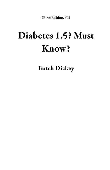 Diabetes 1.5? Must Know? (eBook)