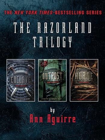 The Razorland Trilogy: Enclave, Outpost, and Horde The New York Times—bestselling trilogy is the story of two young people in an apocalyptic world—facing dangers, and feelings, unlike any they've ever known. Enclave: Fifteen-year-old Deuce lives in a world below New York City which has been decimated by war and plague. As part of her new role as Huntress, Deuce is paired with Fade, another teenage Hunter. When the pair discovers that the neighboring enclave has been decimated by tunnel monsters, the elders refuse to listen to their warnings. And when Deuce and Fade are exiled from the enclave, the girl born in darkness must survive in daylight in the ruins of a city whose population has dwindled to a few dangerous gangs. Outpost: Deuce's whole world has changed. Down below, she was considered an adult. Now, topside in a town called Salvation, she's a "brat" in need of training in the eyes of the townsfolk. To make matters worse, her Hunter partner, Fade, keeps Deuce at a distance. Her feelings for Fade are still strong, but he seems not to want her around anymore. Things have been changing on the surface, just as they did below ground. The monsters don't intend to let Salvation survive, and it may take a girl like Deuce to turn back the tide. Horde: The survival of Salvation is up to Deuce, Fade, Stalker, and Tegan. Deuce decides the only way to fight an army is to raise one. At first, everyone laughs at the idea of a girl leading humanity's forces against the Freaks, but then she proves herself in combat. Can Deuce render a permanent truce with the Freaks? Who will survive? Includes bonus chapters from Ann Aguirres Mortal Danger!