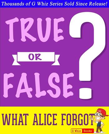 Take the sample quiz below: True or False? Liane was inspired to become an author by her sister, Jaclyn's first novel, Feeling Sorry for Celia. True or False? The pen name, L.M. Moriarty is used by Liane for her children's book series. True or False? Movie rights for the novel have been sold, and Cameron Diaz and Penelope Cruz are being considered by the producers for the role of Alice. Do you know the answers to the questions above? Are you a fan of What Alice Forgot by Liane Moriarty? Would you like to have hours of entertainment and enjoyment about the book you love? If you've answered yes to any question above, get ready for a hip-new series that bring you FUN and EDUCATION at the same time! Gather around with family and friends and challenge one another with a series of questions ranging from easy to difficult levels and see who wins! Submit your Quiz Game scores via Google Forms for a chance to be ranked on 'G whiz Spotlights' and hop on the Wall of Contributors! It's safe and fun for the whole family! "Acts as an incredible reading guide. Helps to know not only about the books but the authors as well." - Marilin A. “Get ready for fun, down-to-earth, and amazing facts that keep you laughing & learning!" Tips & Tricks to Enhance Reading Experience • Enter "G Whiz" after your favorite title to see if publication exists! ie) Harry Potter G Whiz • Enter "G Whiz 101" to search for entire catalogue! • Collect Stars redeemable for books with every correct answer! • Participate in priority events by joining "G Whiz Crew"! • Submit a review for G Whiz trilogy sets and hop on the Wall of Contributors! DISCLAIMER: This work is a derivative work not to be confused with the original title. It is a quiz game book designed to enrich appreciation of the original title through entertainment and education. It is unofficial and unauthorized, and no content shall be deemed authoritative nor used for citation purposes. All questions come with source URLs for further reading and enjoyment. Refined and tested for quality, we provide a 100% satisfaction guarantee or your money back.