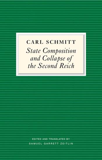 Newly published for the first time in English translation, Carl Schmitt’s 1934 tract, State Composition and Collapse of the Second Reich: The Victory of the Bourgeois Citizen over the Soldier, is an important addition to the corpus of Schmitt’s work in English. Written and published at the height of Carl Schmitt's entanglement with National Socialism, this work outlines Schmitt’s historical and propagandistic account of the collapse of the Second German Empire and of Germany’s defeat in the First World War and sets the stage for his account of what should come next. In this swiftly paced polemical history, Schmitt locates the roots of Germany’s defeat in the First World War in constitutional compromises between the Prussian soldier state and the liberal bourgeois citizenry forged in the course of the nineteenth century. These compromises left unresolved the tension between liberal constitutionalism and an executive-led strong state built on military power, preventing the Reich from being able to mobilize German society in order to wage a successful war effort. Schmitt’s account of how the Bismarckian Reich was undermined from within serves as a guide, in his view, for how the Nazi regime should avoid a similar fate. A work of crisply riveting and, at times, haunting prose, Schmitt’s State Composition and Collapse of the Second Reich will be a source of persistent historical interest to all students of history, politics, Nazism, political thought and the First and Second World Wars.