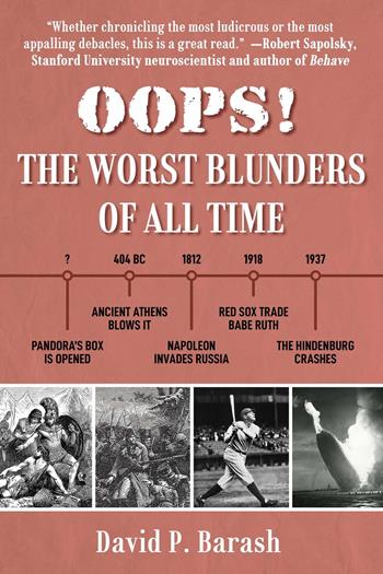 Travel through history and around the world to learn about the greatest mistakes, blunders, and bloopers of all time! Everyone makes mistakes and nearly everyone likes to know about them, especially when made by someone else! The Worst Blunders of All Time*: Shocking Tales from Pandora's Box to Putin's Invasion* presents some of our most notable blunders, from the silly to the consequential, from ancient history to current events. It offers the pleasure of Schadenfreude and of an easy-going reading experience, as well as—here and there—some learning opportunities. The reader will see when relatively big things have gone wrong and couldn’t be called back, such as iconic, mythical blunders like Pandora opening that troublesome box and Eve taking her ill-advised bite, to great historical oops such as Napoleon’s invasion of Russia in 1812, as well as some less monumental but nonetheless exemplary mistakes, such as the “Curse of the Bambino,” when the Boston Red Sox sold Babe Ruth—at the time, a pitcher—to the New York Yankees. These and other exemplary oops are presented in a light-hearted way, with some exceptions being catastrophic, current catastrophes, such as Trump’s egregious mishandling of the COVID-19 pandemic. Author David P. Barash will take readers from the tragic to the whimsical, with the latter represented by, for example, “Wrong Way Corrigan,” an early twentieth century aviator who thought he was flying nonstop from New York to California, but, confused by a heavy fog, ended up in Ireland. Pointing out these and other mistakes will be an exercise in Monday morning quarterbacking and 20-20 hindsight. Thus, The Worst Blunders of All Time shall “backstrapolate”: looking in the rear-view mirror at mistakes made by others. The Worst Blunders of All Time is neither an advice book nor a series of cautionary tales. It’s an easy and accessible read, especially useful as therapy in these difficult times. However, its nonetheless accurate and informative, giving rise to some potentially useful take-home messages, keyed to its material. Ideally, we should all benefit from our own mistakes, making lemonade out of lemons, while also following Eleanor Roosevelt’s advice: “Learn from the mistakes of others. You cannot live long enough to make them all yourself.”