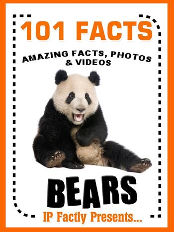 IP Factly presents... "101 Facts… BEARS!" Amazing facts, photos and video links to some of the world's most lovable animals. Bear books for children - a fun and fascinating way for young readers to find out more about these highly intelligent creatures. This bear book for kids mixes facts, photos and even includes a video clip section. IP Factly's 101 Facts series has been designed to encourage and bolster independent reading. Accompanying webpage with video clips This book provides fact after fact for information hungry children to tell family and friends, and even has an accompanying webpage with video clips of the bear species in the book. It makes learning fun and gives a real reason for children to want to read by themselves. Kids will love discovering animal facts to share and enjoy. Fascinating Facts Include... The giant short-faced bear existed up until 11,000 years ago. It is believed to be the largest carnivorous mammal to have ever lived. A bear’s sense of smell is seven times better than a bloodhound’s! In spite of being classified as carnivores, about 75% to 85% of a bear’s diet is made up of plants. Bears do eat honey, although they do not like it as much as Winnie the Pooh does. In fact, they prefer to eat the baby bees when they do stumble upon a beehive. Contrary to popular belief, bears are not nocturnal. In fact, most of them are active during the day.