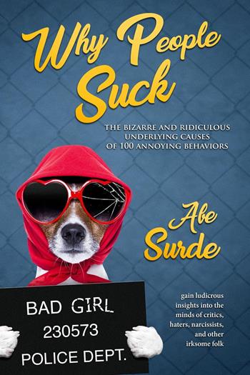 Humor for the heart when the world is insane! Give the gift of laughter this winter season! There's a perfectly comical explanation for that bad behavior! Abe Surde is a progressive humorist and master mixologist who tackles—with a smile and a wink—100 challenging personality types seen in everyday life. Arm yourself with hilarious tips for handling bullies, drama queens, haters, micromanagers, narcissists, troublemakers, and more. WHY PEOPLE SUCK is great medicine for anyone frustrated by the actions of another. So don't get mad, get laughing! Send a book to that "special someone." Also makes a perfect gift for waiters, cashiers, drivers, IT support teams, social workers, customer service reps, and other service industry workers in need of some entertaining stress relief. Note of warning for delicate readers: the book contains adult language, references to sex and drugs, but only minimally to rock and roll