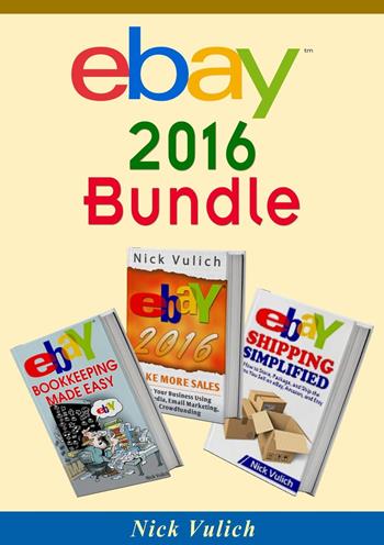 Do you want to sell more stuff on eBay? eBay 2016 Bundle is the book you need. eBay 2016 will show you how to ... - pick items that sell. - build a mailing list to capture your customers - sell on social media eBay Shipping Simplified will show you how to - to ship like a pro - ship internationally - enable your items for eBay's Global Shipping Program - Pack your items safely and securely eBay Bookkeeping Made Easy will - - walk you through bookkeeping basics - help you navigate through GoDaddy Bookkeeping - walk your through the permits and licenses you need to sell online Whether you're new to eBay, or an experienced seller, eBay 2016 Bundle will help you organize your business, ship more efficiently, keep better records, and make more money.