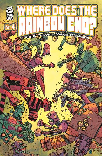 The robots from the “Dark Cage” and “Rainbow” Sectors come to blows in this final issue of Where Does The Rainbow End! Who will survive this final explosive confrontation, and will Gilda stay with her robot family or abandon them to join the rest of humanity?!