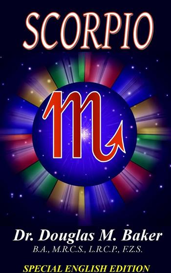 INTRODUCTION TO THE ZODIAC SERIES: SCORPIO Special English Edition Personality and Soul Characteristics plus Rising Signs Discover your own myth and revitalise your life with the power of ESOTERIC astrology! Astrology comes of age with this remarkable set of 12 zodiac books (Each sign sold separately) that explore the inner person, the secret Self, as well as the personality that the Self presents to the world. You will be astounded to discover how far reaching the influence of the signs are on our lives, especially our sun (birth) and rising signs, and how much you are a product of the stars. These easy-to-read books are far more than a representation of the same old characteristics and qualities of the signs. With over 55 years of practical experience in astrology, research, teaching and interpretation, Dr. Douglas M. Baker is in a unique position to fully appreciate just what it is people want to know about themselves. In these works, he shares his knowledge with us all, covering such subjects as: The personality and psychology of the signs. Helpful hints on raising the children of each sign. Health and the zodiac. Flower remedies and tissue salts related to each sign. How your own sign is reflected in the world around you. The talents and potential genius of the signs. The Rising Sign – an indication of the life's purpose. The spiritual path of your sign. The qualities and influences of your sign's ruling planet. Sample charts and their detailed interpretation These books will help you tap into reservoirs of energy that are linked to your own sign. Energy that will help you cope with the stresses and strains of modern life and bring you into closer contact with the real you, your inner self, the Soul! This is your birthright because you were born in that particular sign. ARIES: March 21st to April 20th TAURUS: April 21st to May 21st GEMINI: May 22nd to June 21st CANCER: June 22nd to July 23rd LEO: July 24th to August 23rd VIRGO: August 24th to September 23rd LIBRA: September 24th to October 23rd SCORPIO: October 24th to November 22nd SAGITTARIUS: November 23rd to December 21st CAPRICORN: December 22nd to January 20th AQUARIUS: January 21st to February 19th PISCES: February 20th to March 20th
