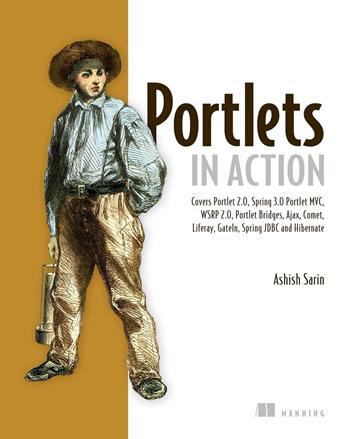 Summary Portlets in Action is a comprehensive, hands-on guide to building portlet-driven applications in Java. Covers Portlet 2.0, Spring 3.0 Portlet MVC, WSRP 2.0, Portlet Bridges, Ajax, Comet, Liferay, GateIn, Spring JDBC, and Hibernate. About the Technology Portlets are the small Java applications that run within a portal. Good portlets work independently and also communicate fluently with the portal, other portlets, as well as outside servers and information sources. Using Java's Portlet 2.0 API and portal servers like Liferay, you can build flexible, stable business portals without the design overhead required by other application styles. About the Book Portlets in Action is a comprehensive guide to building portlet-driven applications in Java. It teaches portlet development hands-on as you develop a portal that incorporates most key features of the Portlet 2.0 API. And because portals and portlets are so flexible, the accompanying source code can be easily adapted and reused. Along the way, you'll learn how to work with key web frameworks like Spring 3.0 Portlet MVC and DWR. Written for Java developers. No prior experience with portlets required Purchase of the print book comes with an offer of a free PDF, ePub, and Kindle eBook from Manning. Also available is all code from the book. What's Inside Complete coverage of the Portlet 2.0 API Spring 3.0 Portlet MVC and the Liferay portal server Portal design best practices Reusable source code ================================ Table of Contents PART 1 GETTING STARTED WITH PORTLET DEVELOPMENT Introducing portals and portlets The portlet lifecycle Portlet 2.0 API - portlet objects and container-runtime options Portlet 2. 0 API - caching, security, and localization Building your own portal Using the portlet tag library PART 2 DEVELOPING PORTLETS USING SPRING AND HIBERNATE Getting started with Spring Portlet MVC Annotation-driven development with Spring Integrating portlets with databases PART 3 ADVANCED PORTLET DEVELOPMENT Personalizing portlets Communicating with other portlets Ajaxing portlets Reusable logic with portlet filters Portlet bridges Web Services for Remote Portlets (WSRP)