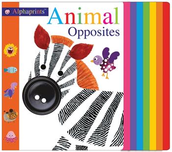 Both parents and young children will love the crazy contrasting animals in Animal Opposites, the latest title in Priddy Books' hugely successful Alphaprints series. This new casebound board book features animal opposites, such as a big shark and little fish, hard lobster and soft jellyfish, noisy lion and quiet mouse. The easy-to-turn graduated pages have foil edges to give the book extra sparkle and shine, and there is added embossing to encourage little fingers to explore and develop fine motor skills. The Alphaprints series features unique artwork created using fingerprints and photographs of everyday things. The original title, ABC, has sold over 1,000,000 copies to date.